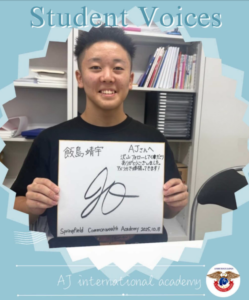 中学卒業後、AJインターナショナルアカデミーに入学 AJで学びながら、ペンフォスター高校の単位を着実に取得