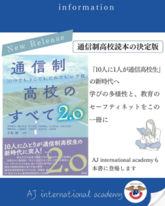 本書は、専門家が描く、通信制高校の真実と未来、学び方を選べる時代へ、新しい教育の可能性を詰め込んだ一冊となっています(AJインターナショナルアカデミーも登場しています)